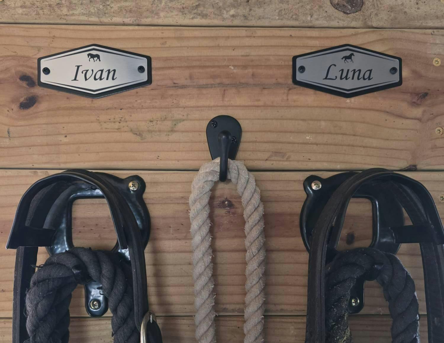 Each nameplate is expertly engraved with your horse’s name, instantly adding a professional, upscale touch to stall doors, paddocks, and barn entrances. Designed to elevate any barn setting—from classic to contemporary—its clean, modern look appeals to private owners, boarding facilities, and show barns alike.