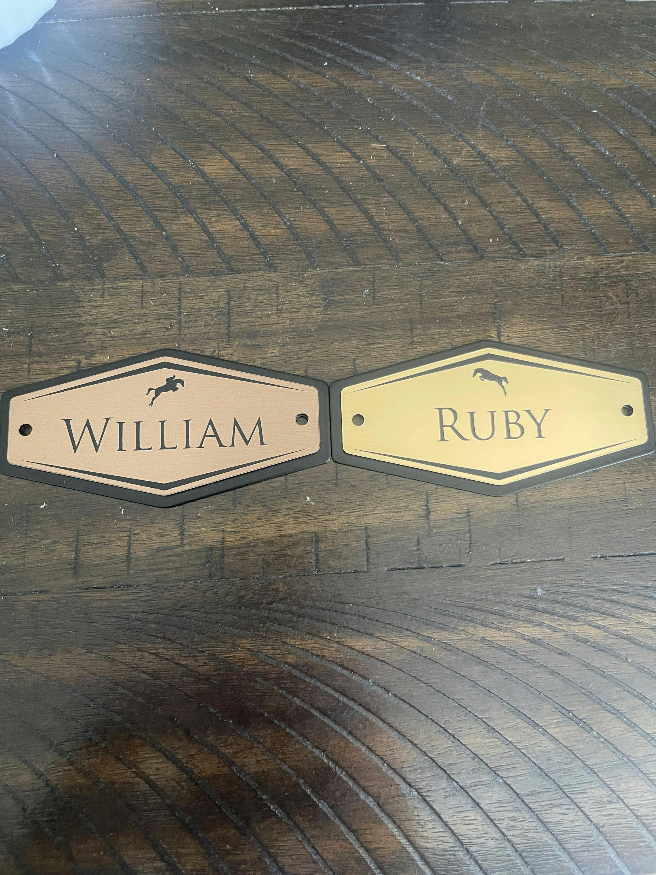 Skip the fussy barn décor—this stall name plate delivers bold simplicity and enduring style that stands out without trying too hard. Crafted from premium, barn-ready materials, it’s built to handle daily wear, shifting temperatures, and long-term exposure without warping, fading, or losing its sharp look. The quality construction ensures crisp lettering and a solid feel, whether you keep it minimal or add extra text. Designed for barns that value substance as much as style, this is a nameplate that holds its ground season after season.