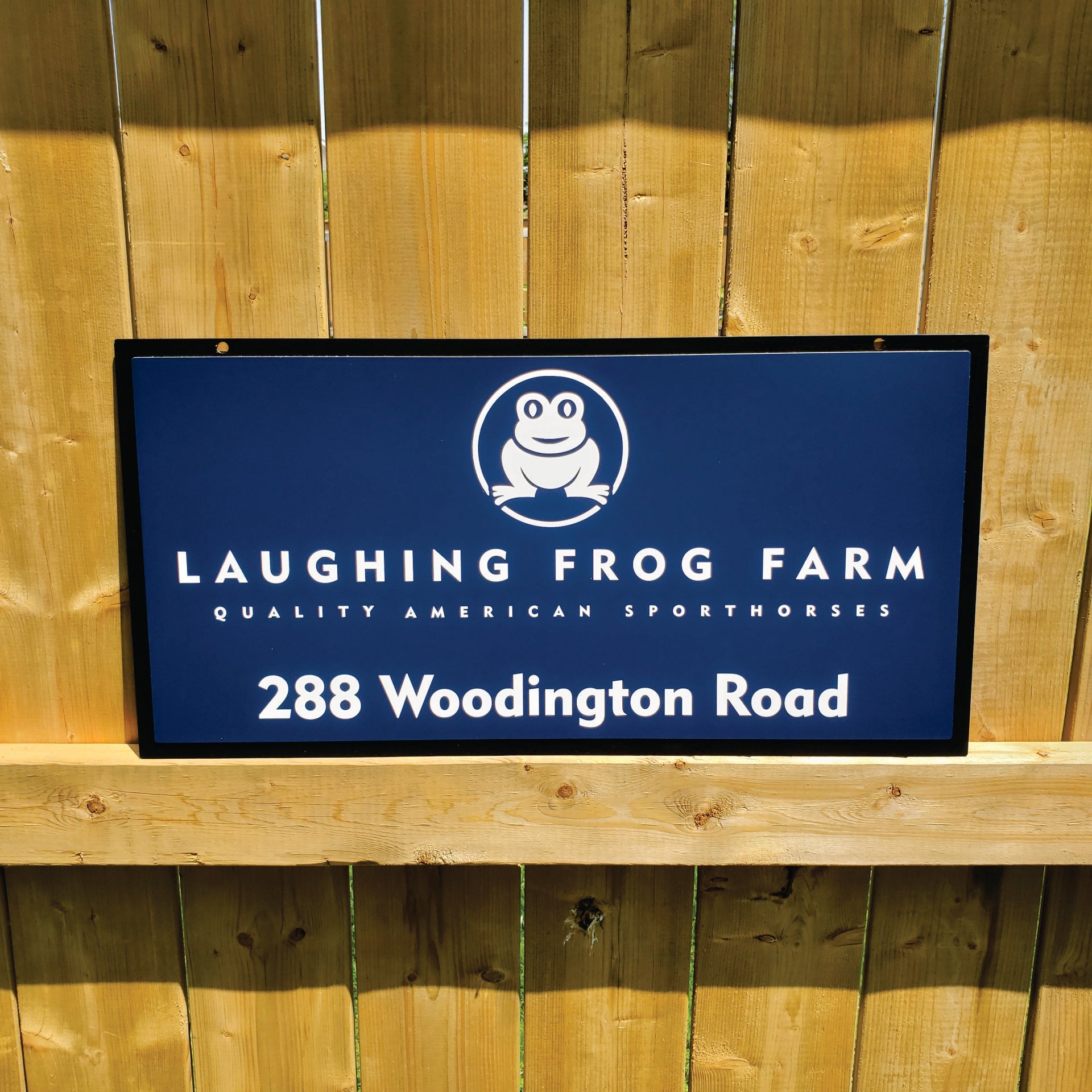 This cottage sign measures 24" X 12" and is powder coated black with a laser cut laminate front plate.