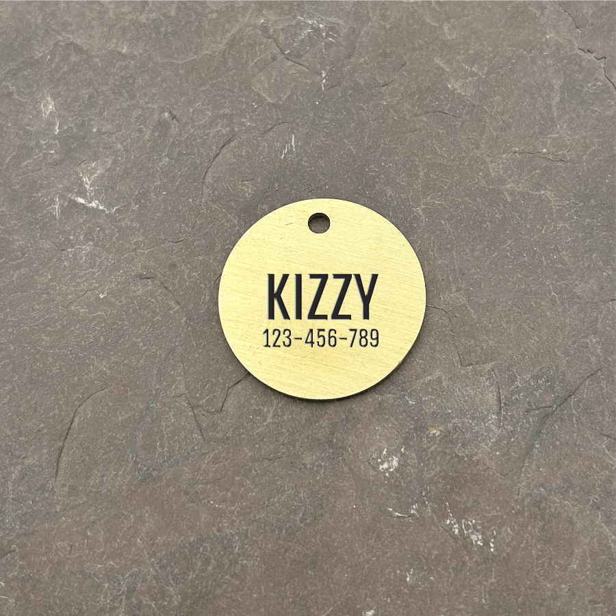 Stand the test of time with our Solid Brass Pet Identification Tag. Its brushed finish adds a touch of elegance while ensuring durability. With deep engraved text, this tag is sure to last for years to come. Keep your pet safe with our classic, yet simple design.