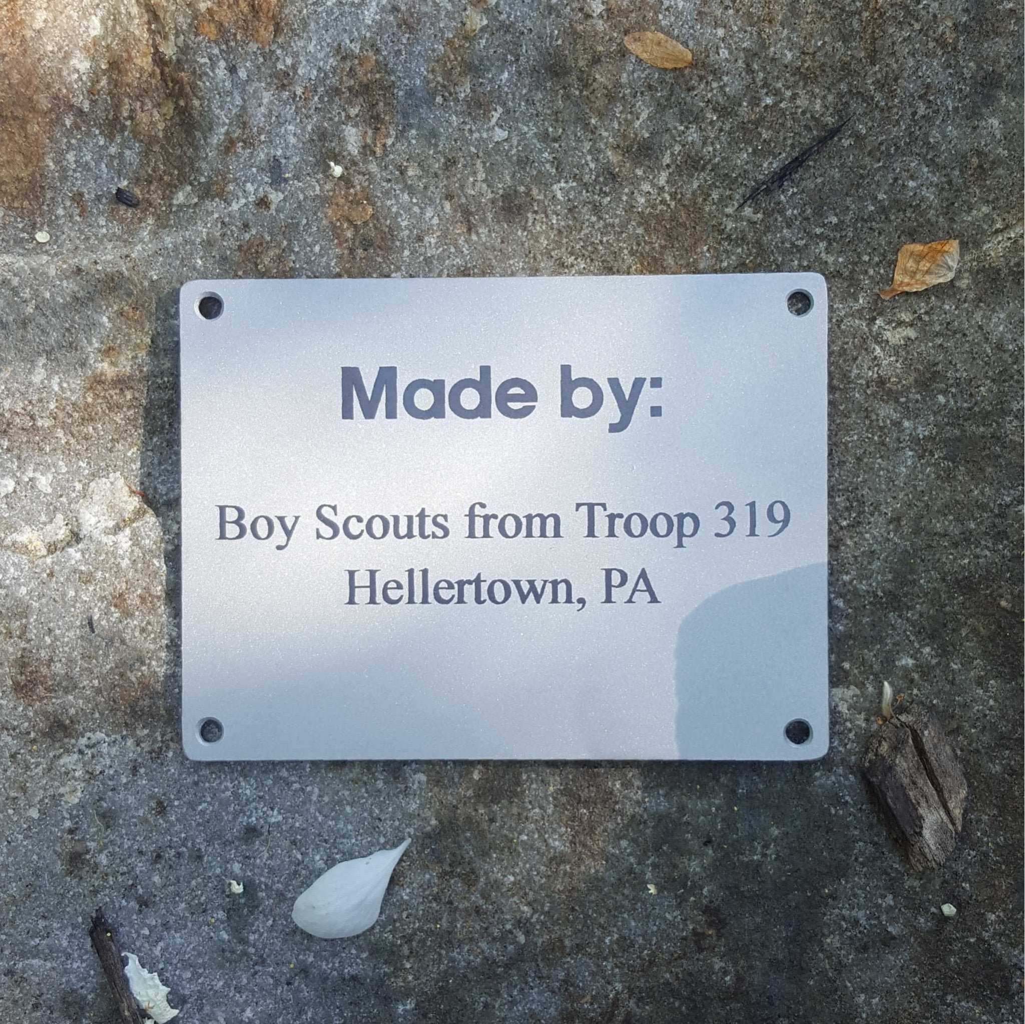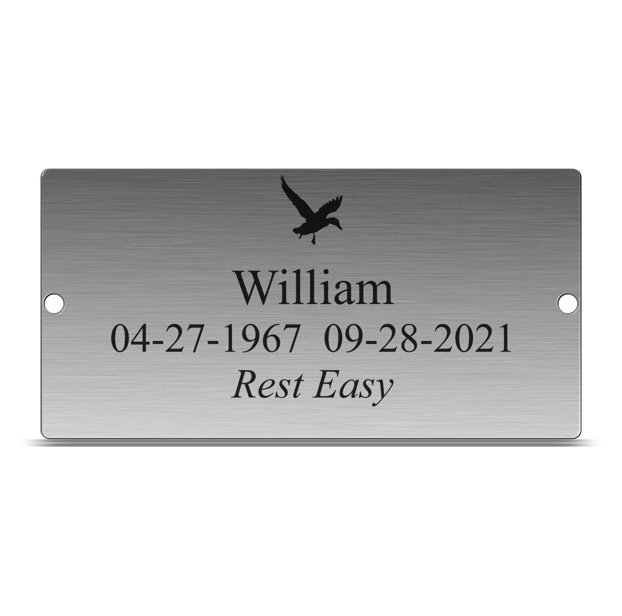 Our Stainless steel memorial plaque is meant to last a long long time. Made of 16 gauge stainless and laser marked black, you can leave it out knowing that it is readable year after year. These make a great bench plaque.